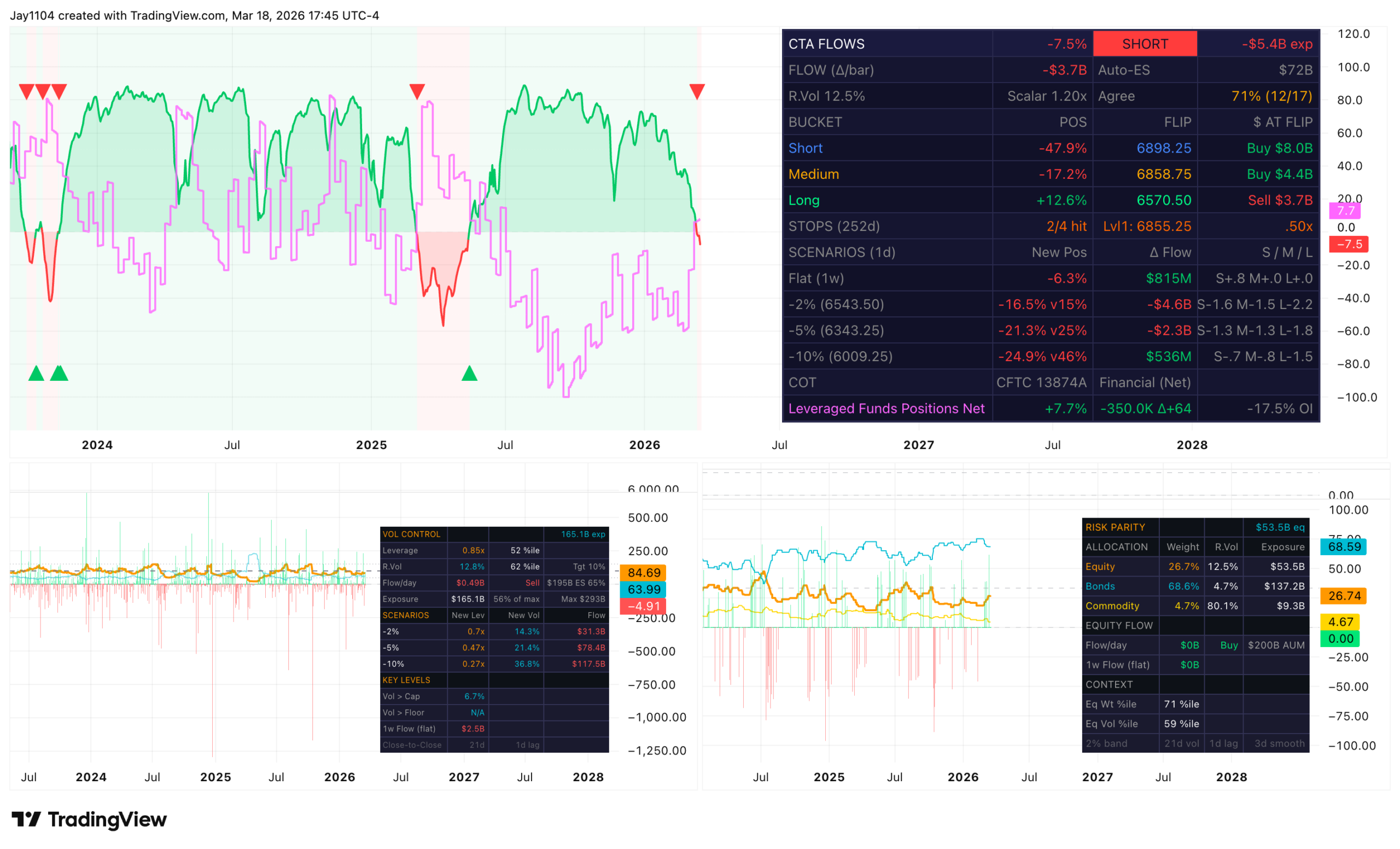 At least based on my CTA model, I have flows as negative, with the next major flip level around 6,570. I’m still calibrating the longer-term trend level, so I don’t have much confidence in it. But more importantly, systematic flows are not supportive of the market rising.