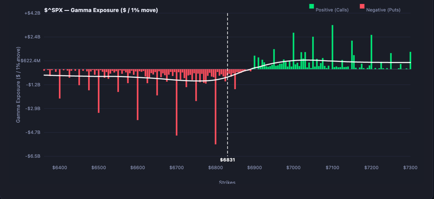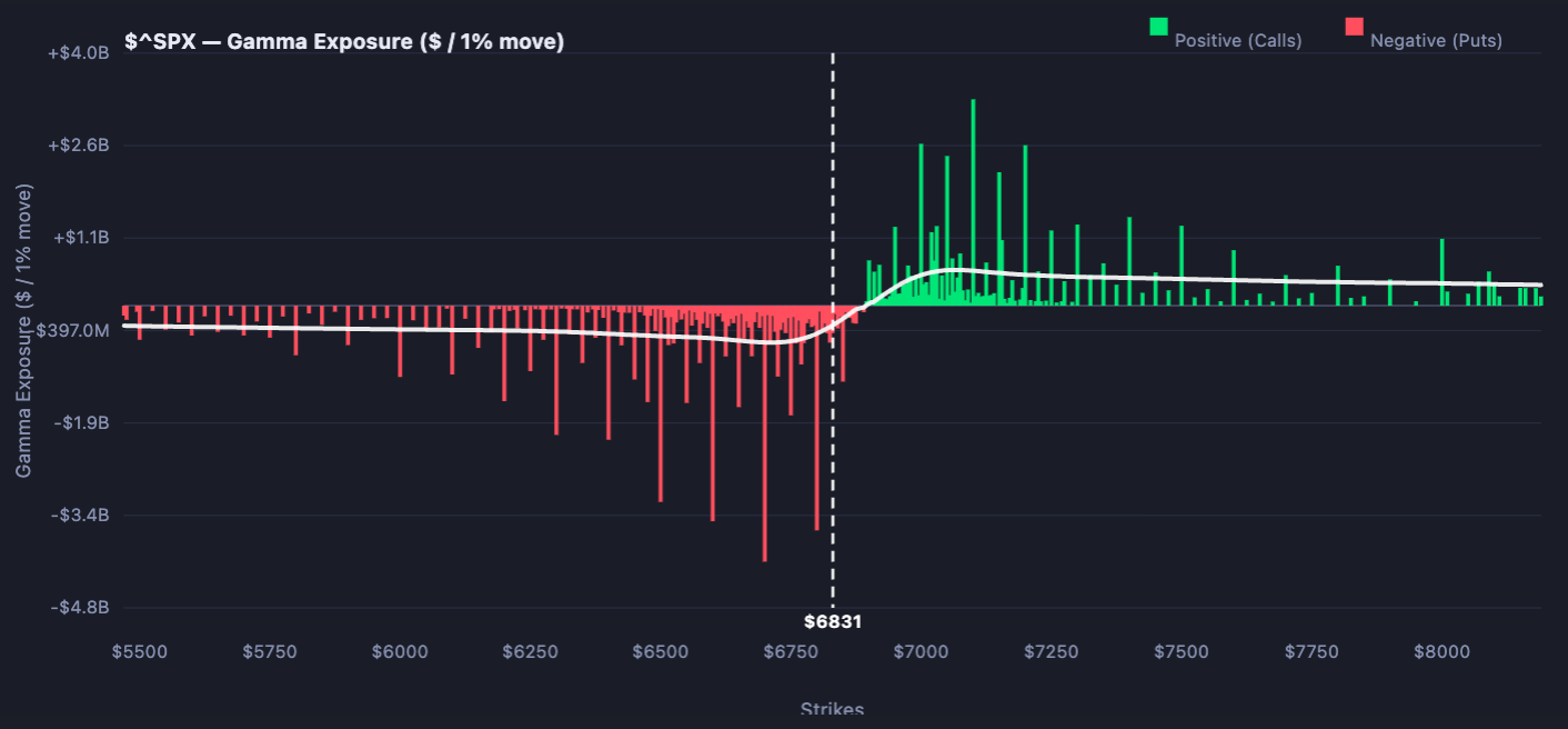 It does appear that the gamma build may fade, at least for now, by Monday, with the put wall shifting down to the 6,700 level. If that happens, it could open a path for the market to move lower and reduce the likelihood of these end-of-day rallies.