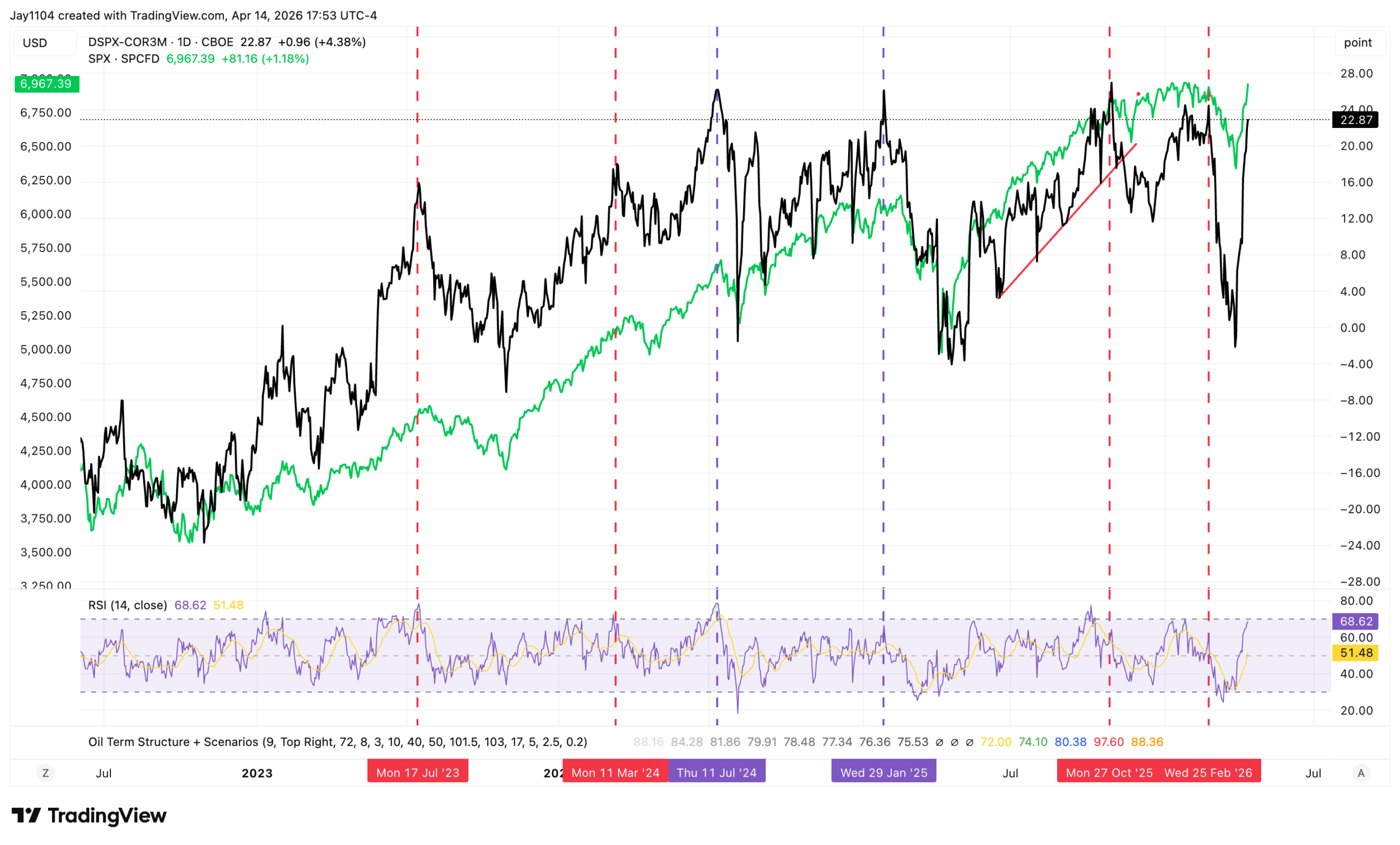 So while it may look like volatility is coming down, what’s really happening under the surface is more nuanced—fixed-strike vol rising even as the VIX falls.