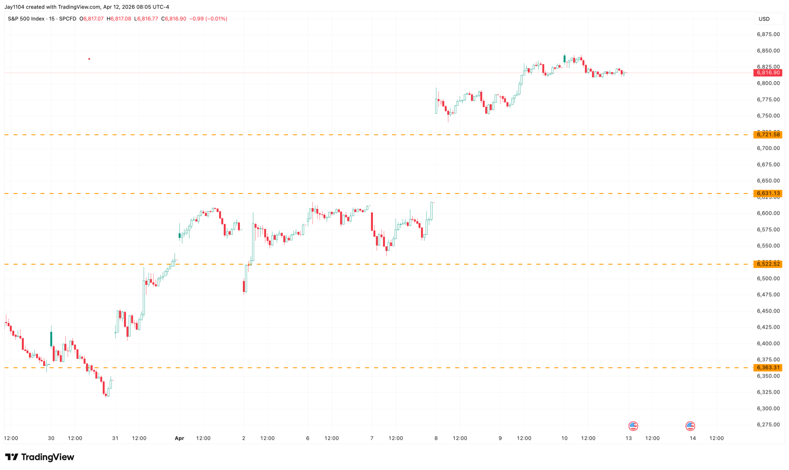 If the war is not over, then, in theory, the entire gap created on April 8 should be filled, and the S&P 500 should move back to around 6,620 over the course of this week, at a minimum. If the index gaps lower at the start of trading on Monday and fails to fill that gap, it would likely result in an island reversal top pattern on the intraday charts. There is little justification for the stock market to be trading at current levels if the conflict continues and oil prices remain at $100 or higher.
