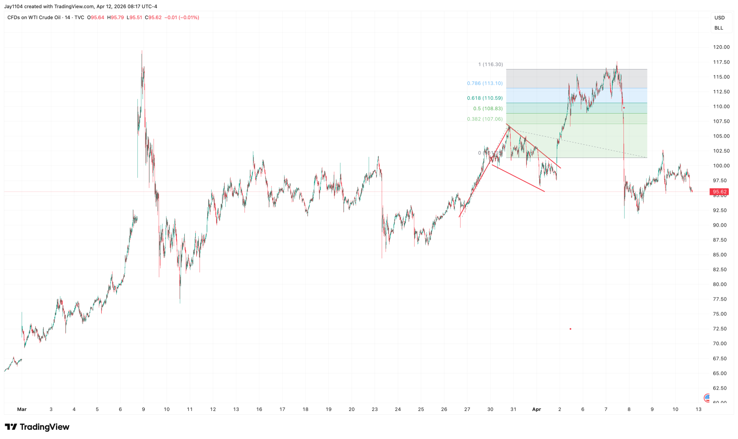 That would suggest there is a chance that some, if not all, of the sharp drop in oil is reversed, with WTI potentially moving back toward the $105 to $110 range. That would not be surprising. Straight-line declines like the one seen on the charts can at times be treated like gaps, and more recently, oil prices have shown a tendency to retrace those types of moves.