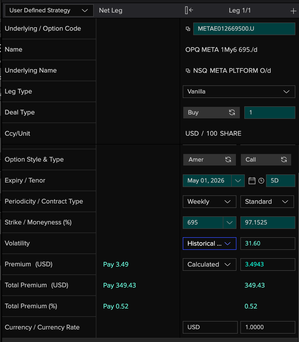 Meanwhile, Meta is pricing in about a 6.3% post-earnings move. From Friday’s close, that implies a range of roughly $630 to $715. In other words, the stock would need to exceed the implied move for that $700 call to make money.