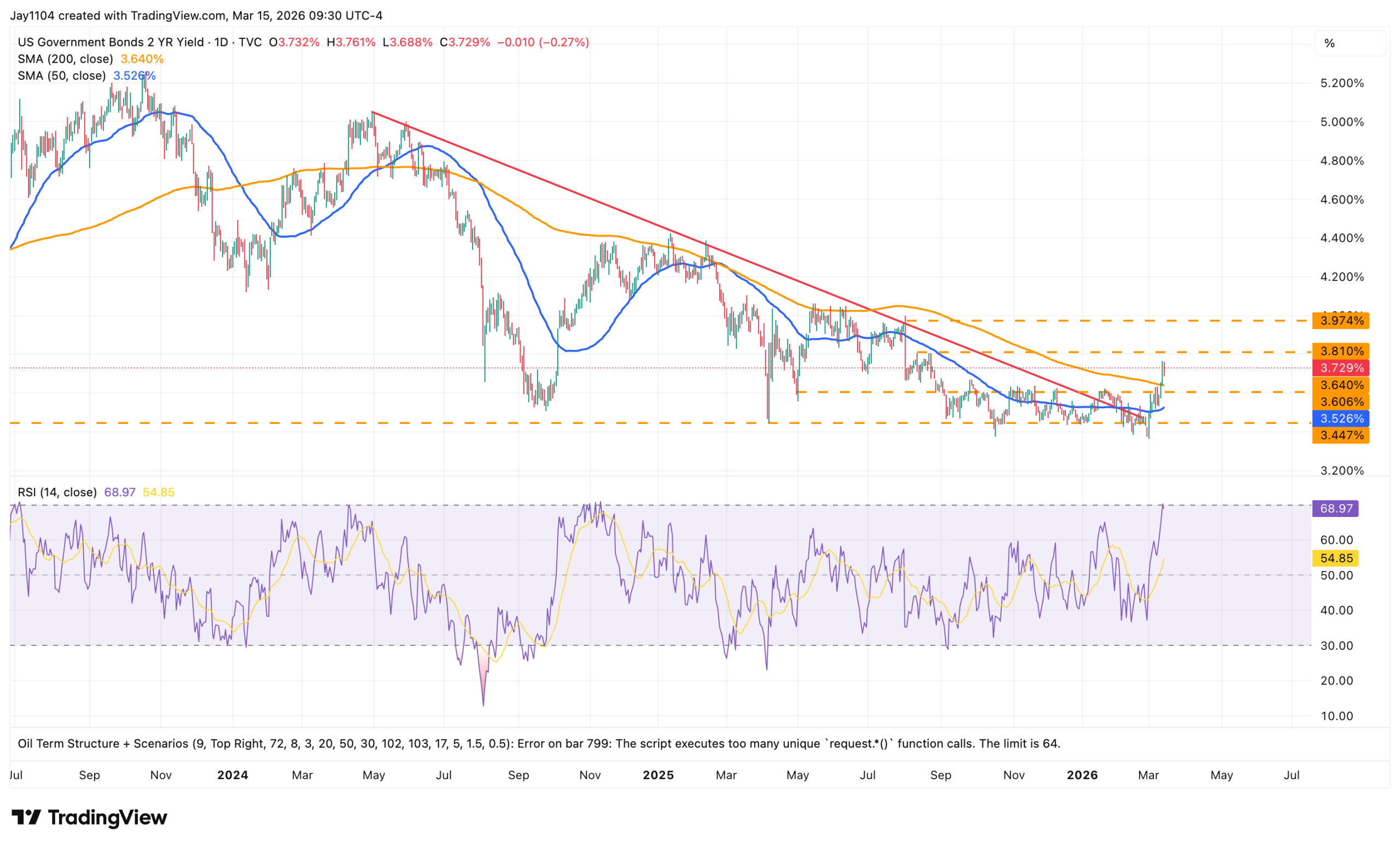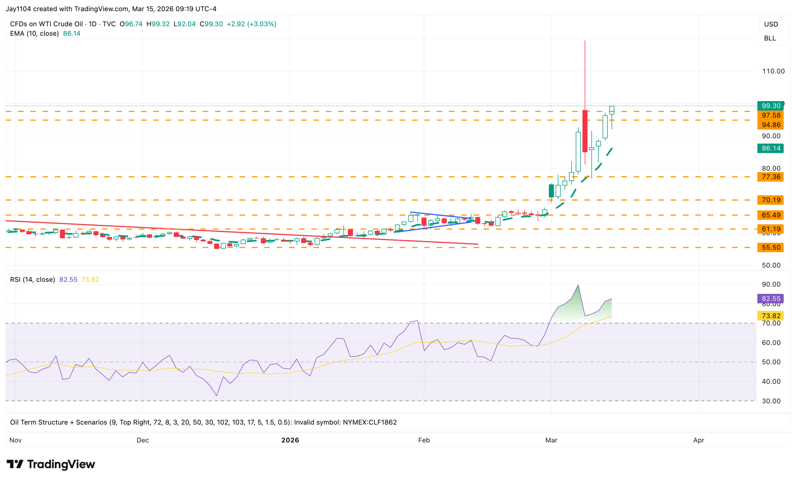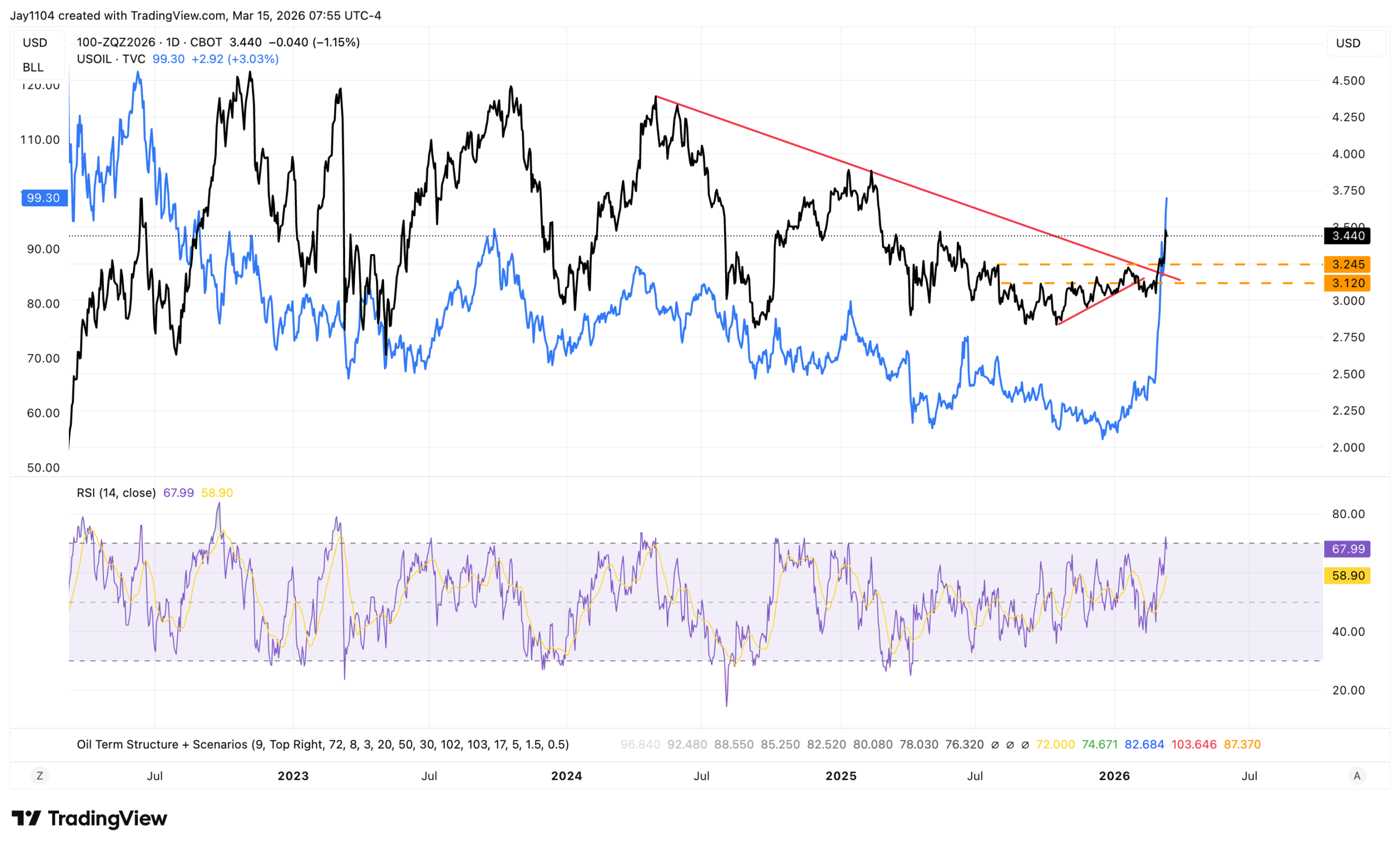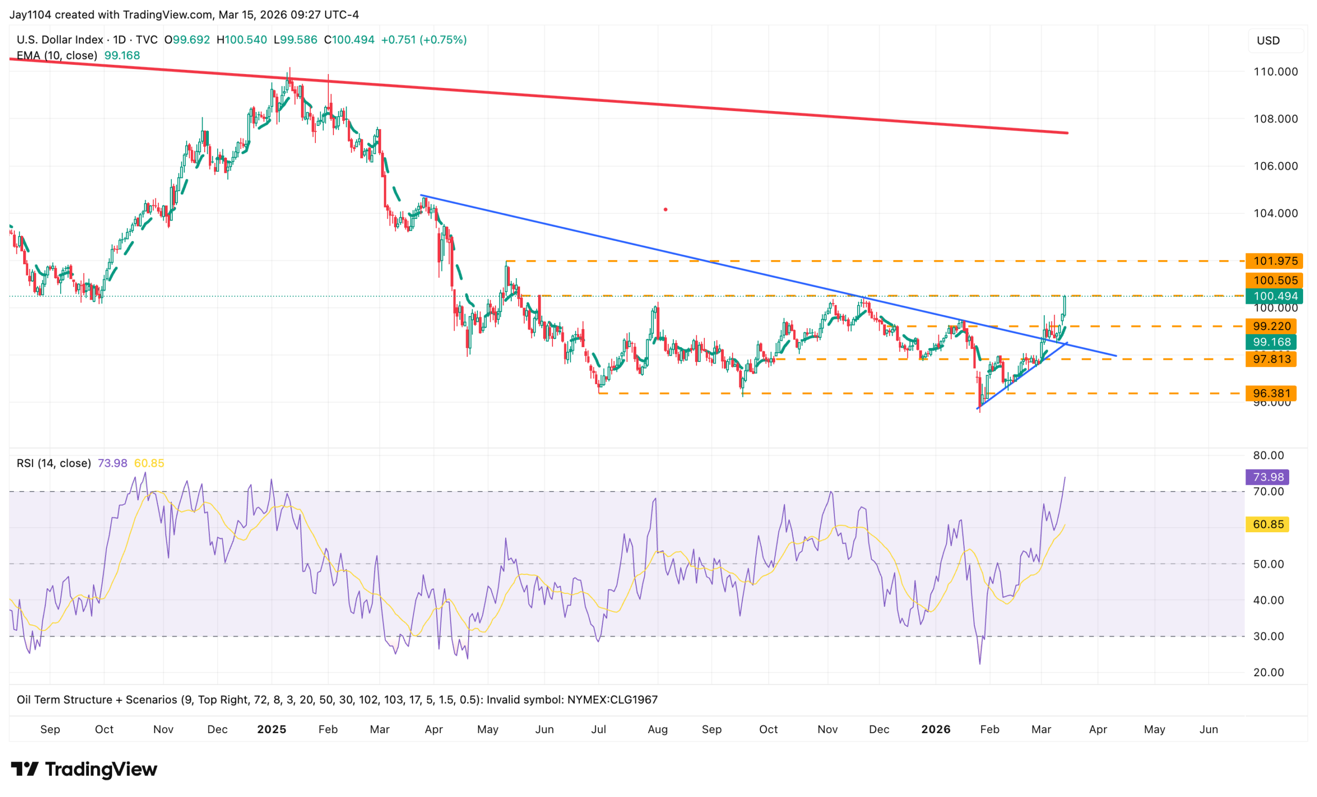 That would likely require oil to remain elevated while rates and the dollar continue to rise. The Dollar Index could move higher as well; once it breaks above 100.50, it could have room to climb toward 102.