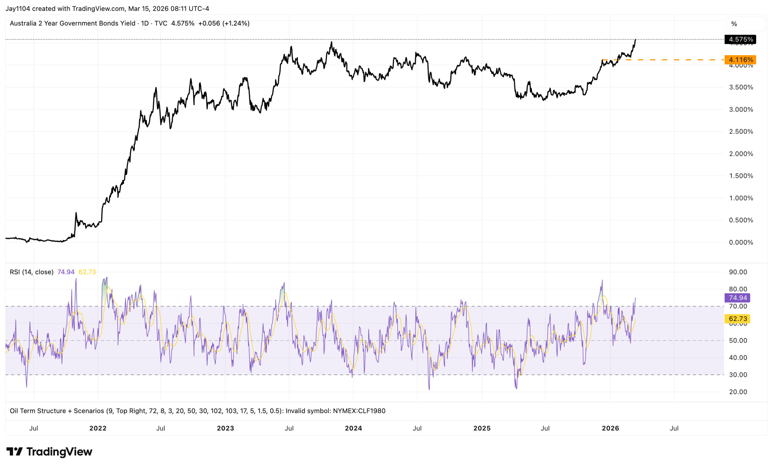 It isn’t just in the U.S. where rates are rising; the 2-year yield in Australia has now eclipsed its October 2023 highs.
