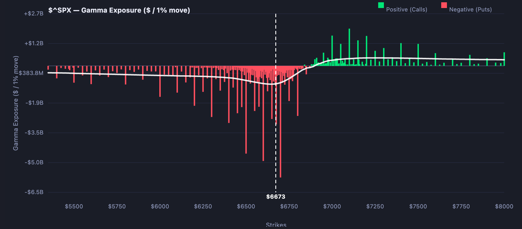 Gamma positioning at the 6,600 level is fairly strong, making it the next likely battleground for the market, as 6,700 is now likely to act as resistance.