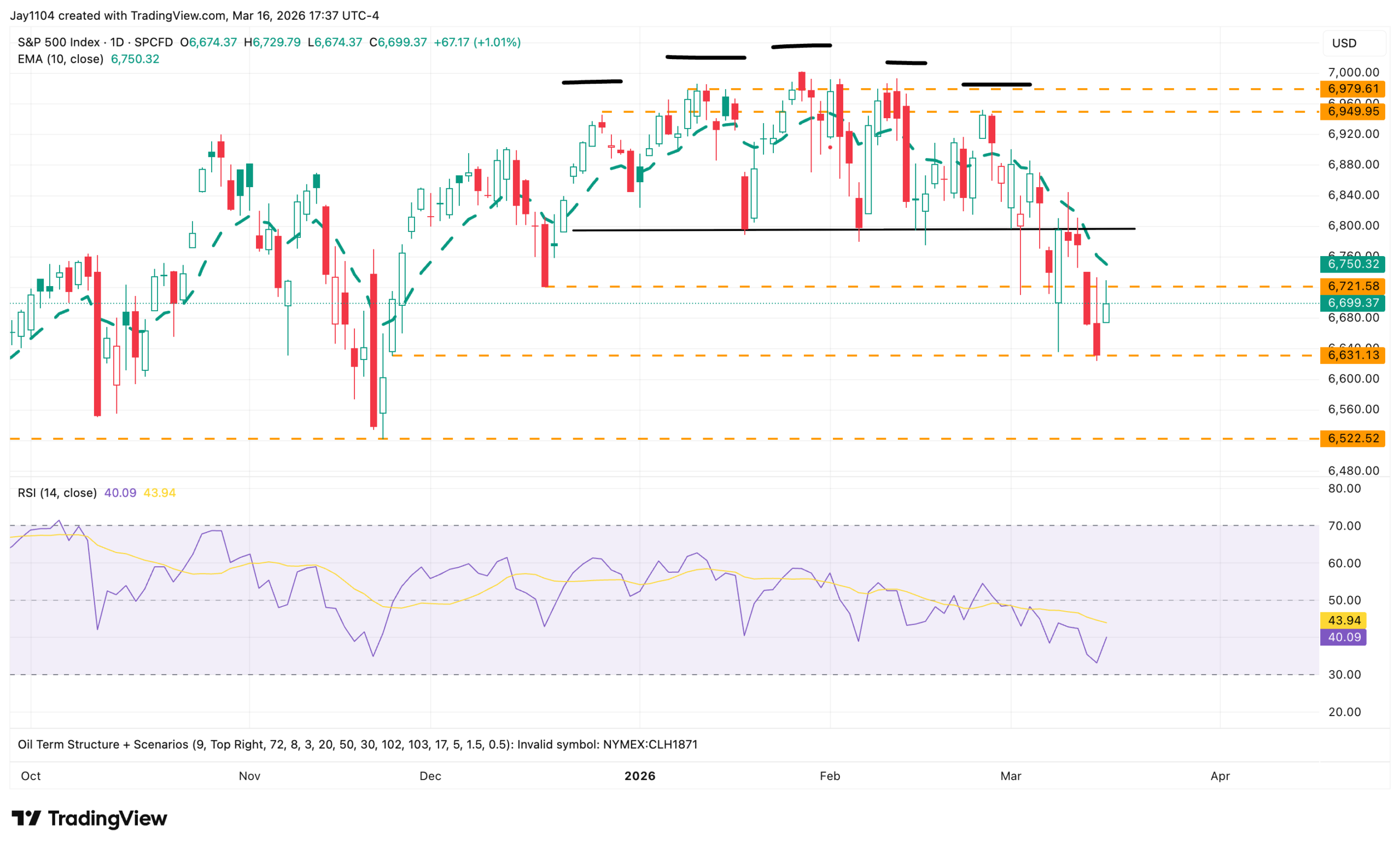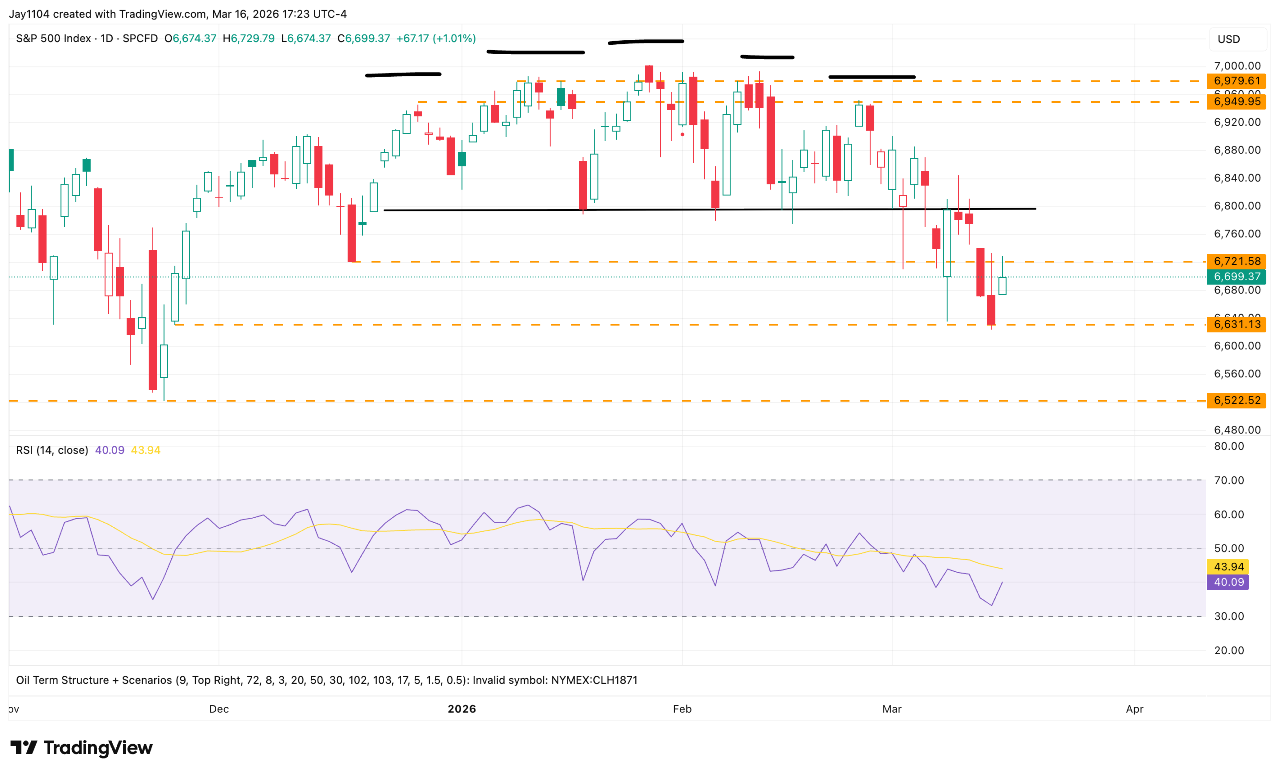 The index stalled right at 6,720, which corresponds to the mid-December low.