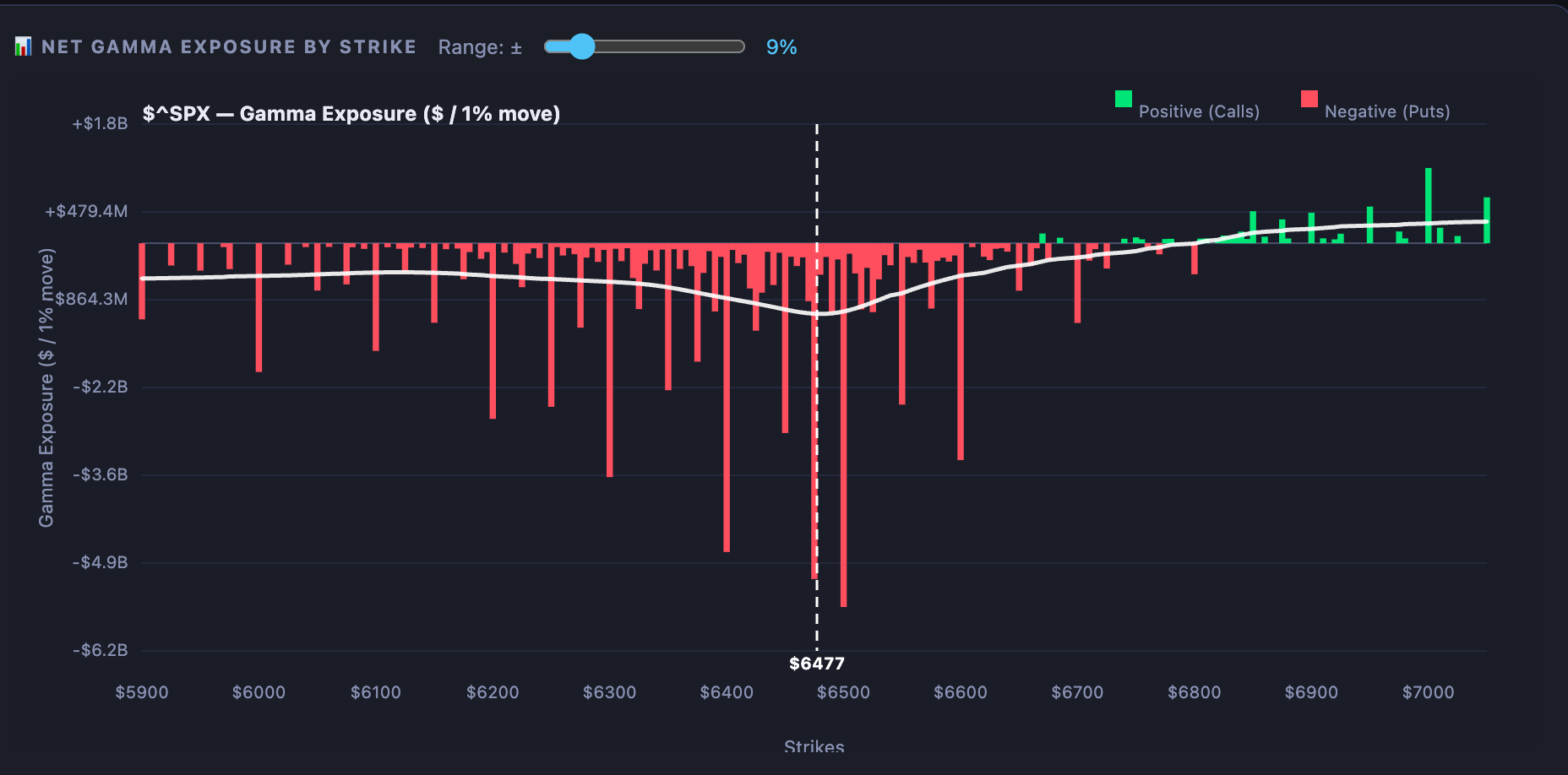 If this is a true pennant — and the way it played out certainly suggests it is — then the decline is likely not over. There’s the infamous JPM collar options positioning level at 6,475, and it could act as a floor in the near term, but the broader question is whether it can actually hold in a market where dealer positioning is this negative. When dealers are in a selling posture, support levels that would normally matter can get steamrolled. We’ll just have to see how it plays out.