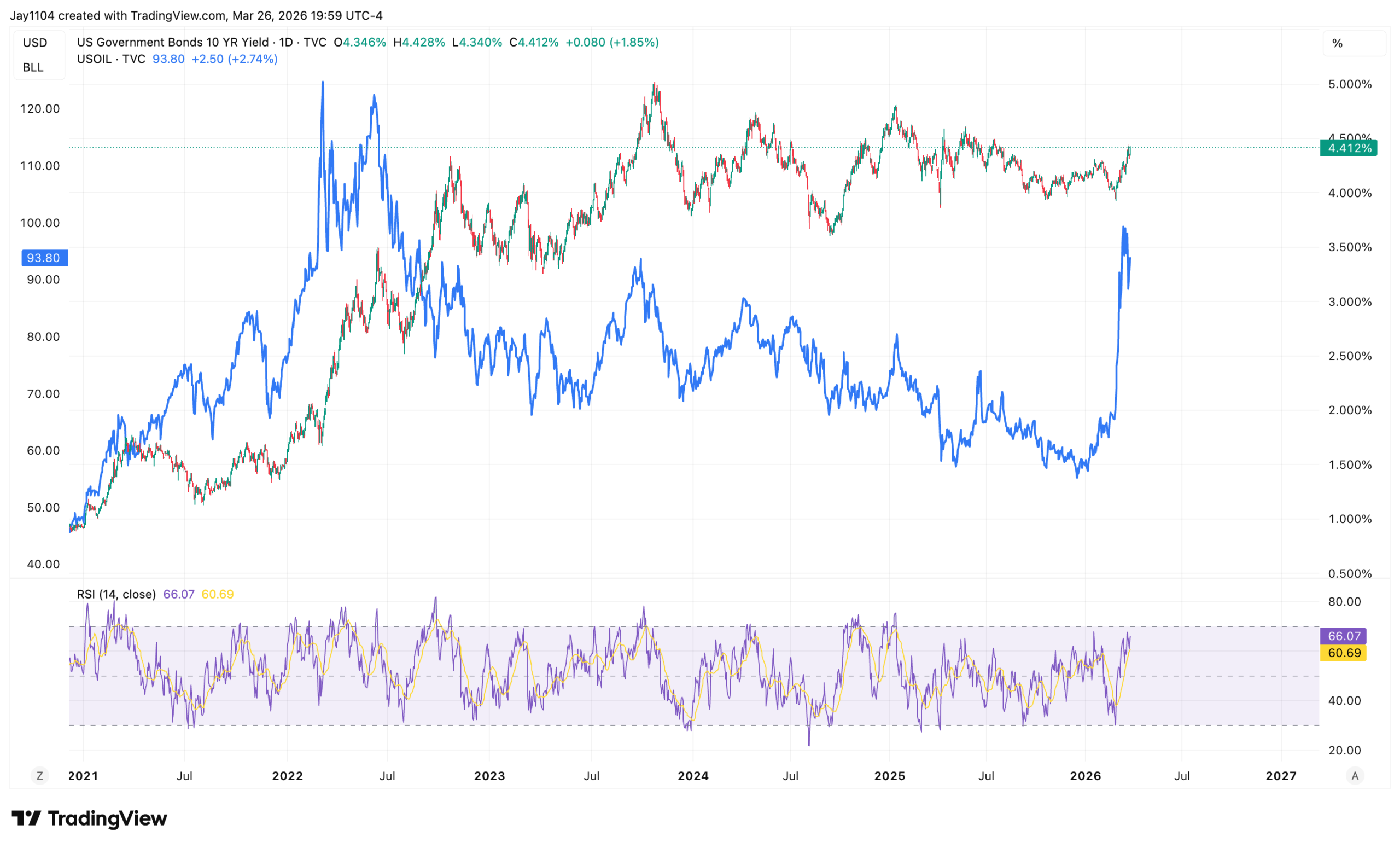 It’s probably worth mentioning that the last time oil was above $90, the 10-year rate was trading at 5%. Draw your own conclusions.