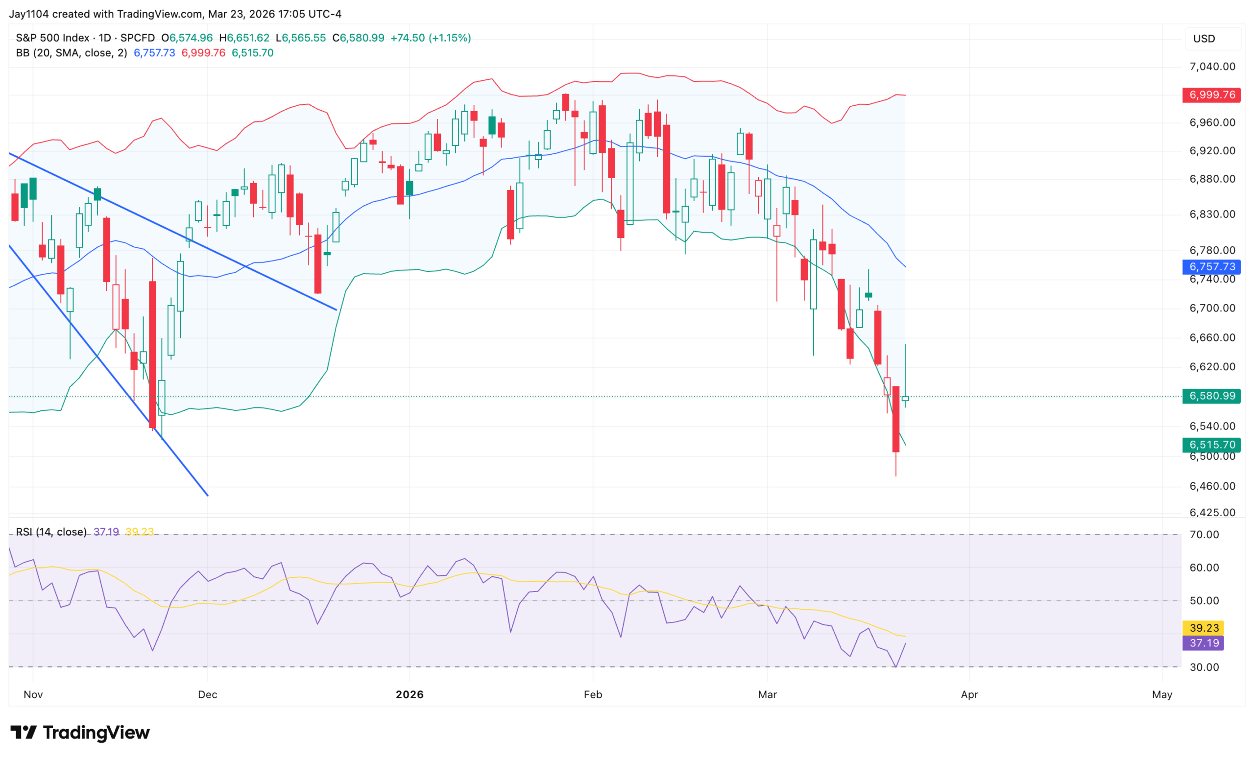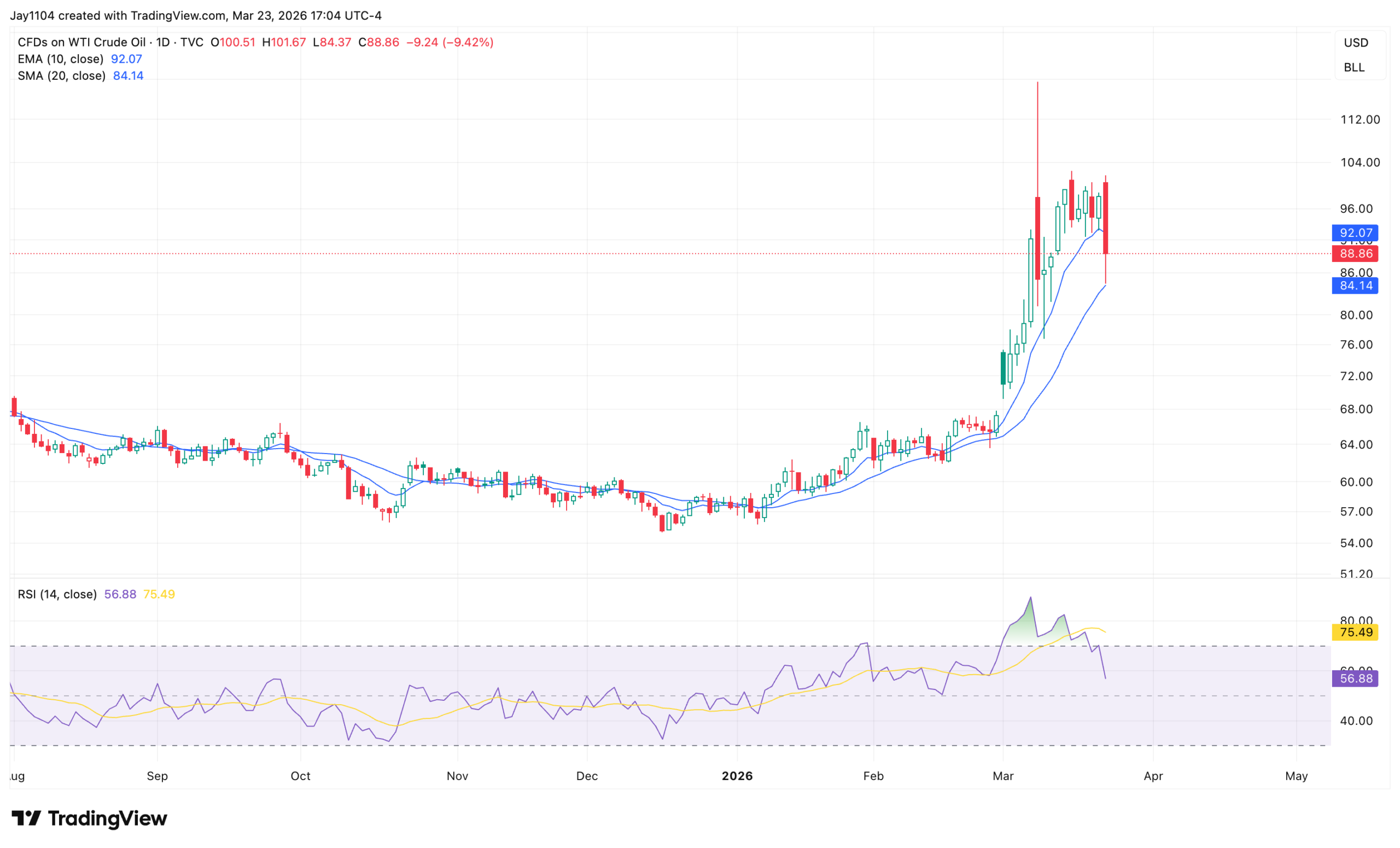 Stocks finished the day higher by roughly 1%, though they had been up significantly more at one point earlier in the session—nearly 2%—following a sharp decline in the price of oil. The move came amid speculation that the war in Iran may be over soon, given President Trump’s willingness to negotiate. However, those claims appear to have been denied by the Iranian government, leaving investors largely uncertain about what happens next. Regardless, WTI oil prices fell below $90, and the market tried to run with it.